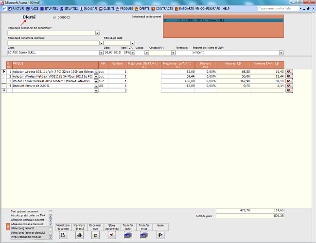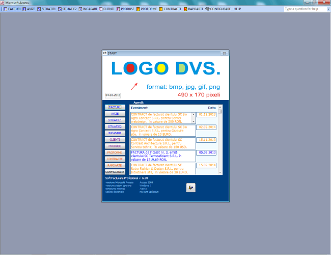 Pentru a introduce datele firmei dvs și pentru a activa programul, intrați în formularul "Configurare"