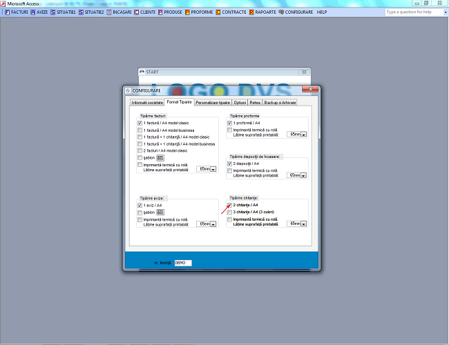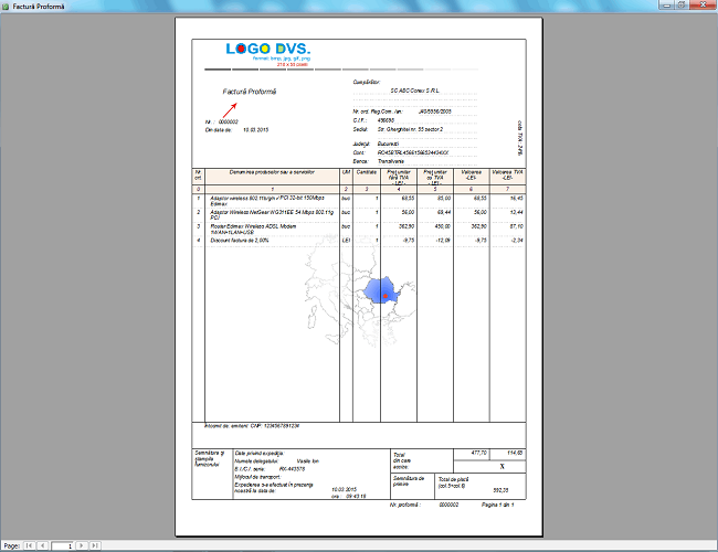 Setare pentru a tipări o proformă în format A4 (vezi ex.)