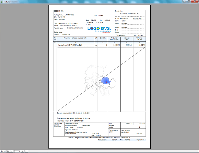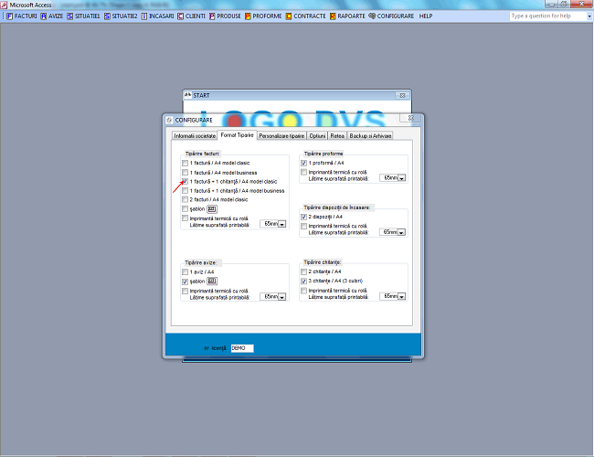Setare pentru a tipări o factură în format business A4 (vezi ex.)